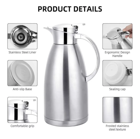 Combining durability, modern elegance, and professional-grade insulation, this silver thermal carafe is a practical and stylish addition to any kitchen or hospitality setup.